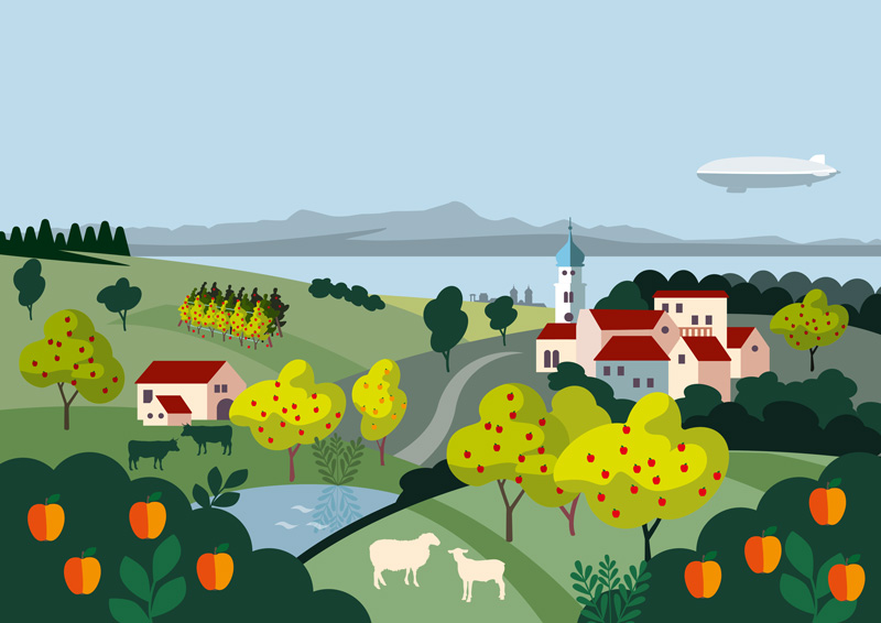 Die Bodenseeregion setzt auf Obst und ganz besonders auf Äpfel. Ein Obstwiesenförderprogramm unterstützt die Landwirtschaft. Illustration: ciwi-design